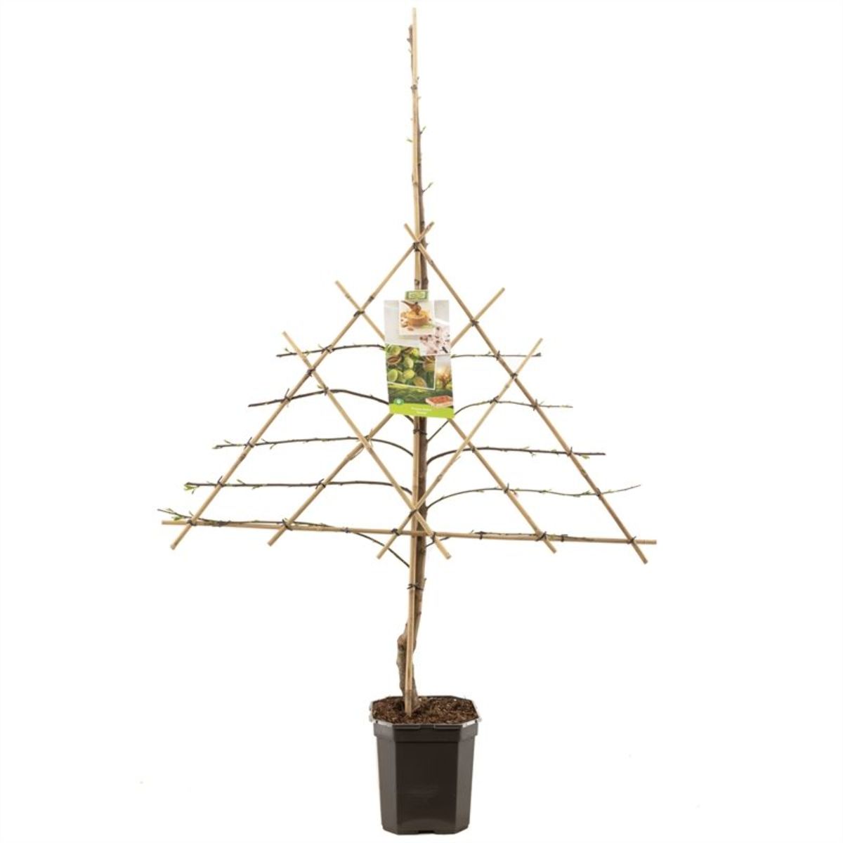 Maak bij het snoeien van de boom, gebruik van de techniek 'vormsnoeien'., Het doel van dit snoeiproces is het , vormen van een mooie, ronde, boomkroon met sterke gesteltakken., Bij een jonge boom zijn het de twijgen, die als toekomstige gesteltakken dienen., Snoei het jonge boompje zo, dat sterke, gesteltakken in een mooie vorm kunnen, groeien. Kies voor 4-6 gesteltakken en, snoei elke verlenging van de , gesteltakken jaarlijks voor de helft in., Zorg dat er voldoende ruimte blijft, tussen de gesteltakken en groeiende, zijtakken zodat er voldoende zonlicht, en ruimte in de kroon komt