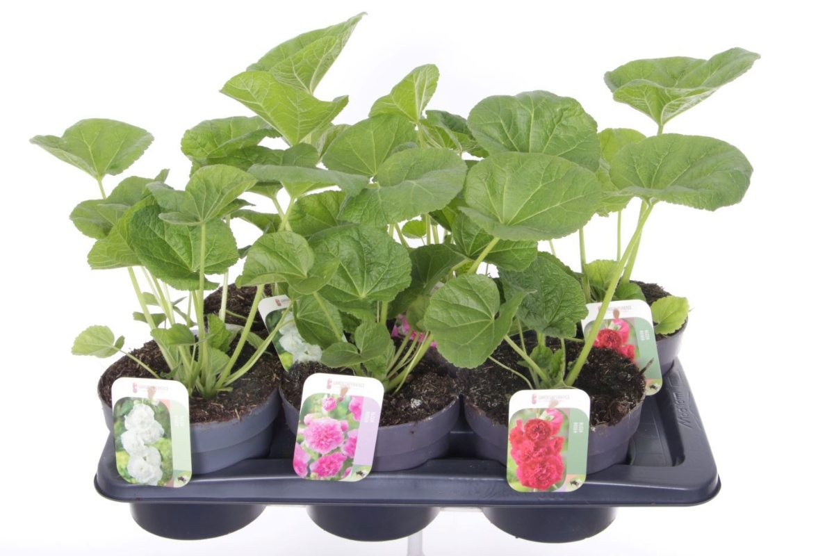 Alcea rosea in varieties